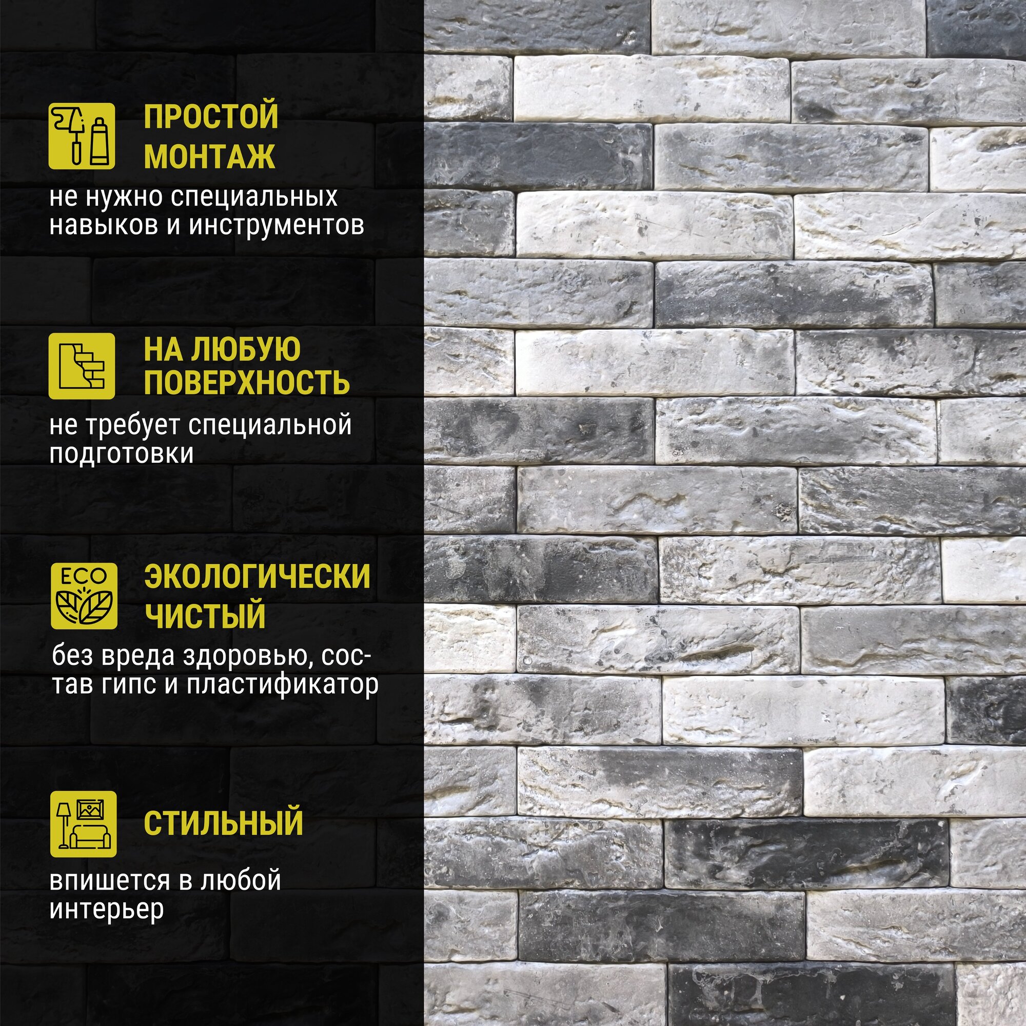 Отзывы на Декоративный гипсовый кирпич камень плитка 190х45х8 - 81 шт, в упаковке 0,9 м2