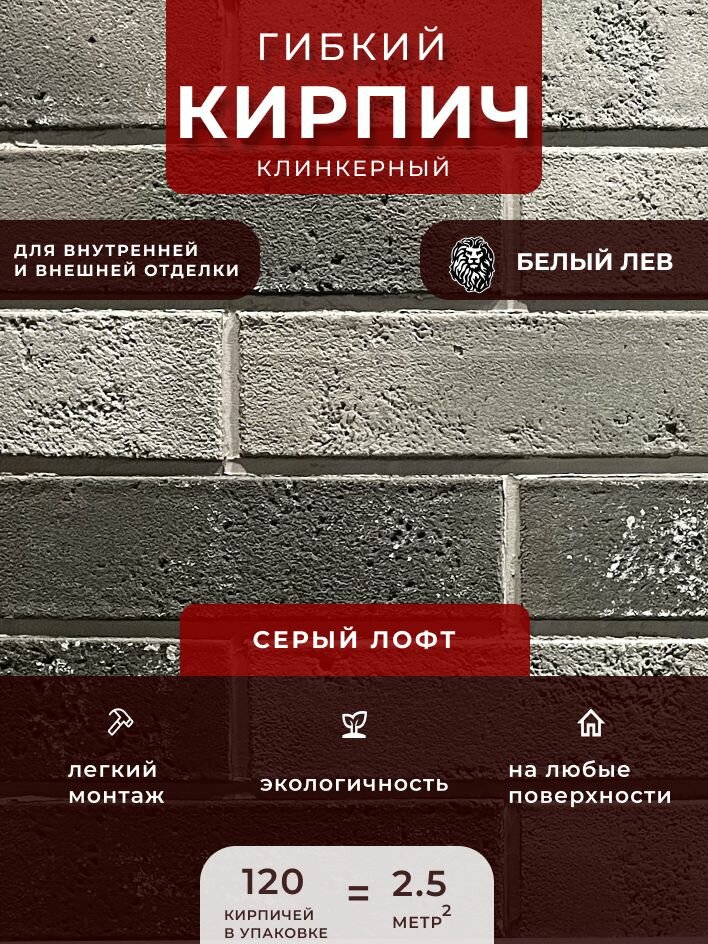 Гибкий клинкерный кирпич "Серый лофт". Декоративный кирпич. Для внутренней и внешней отделки информация: