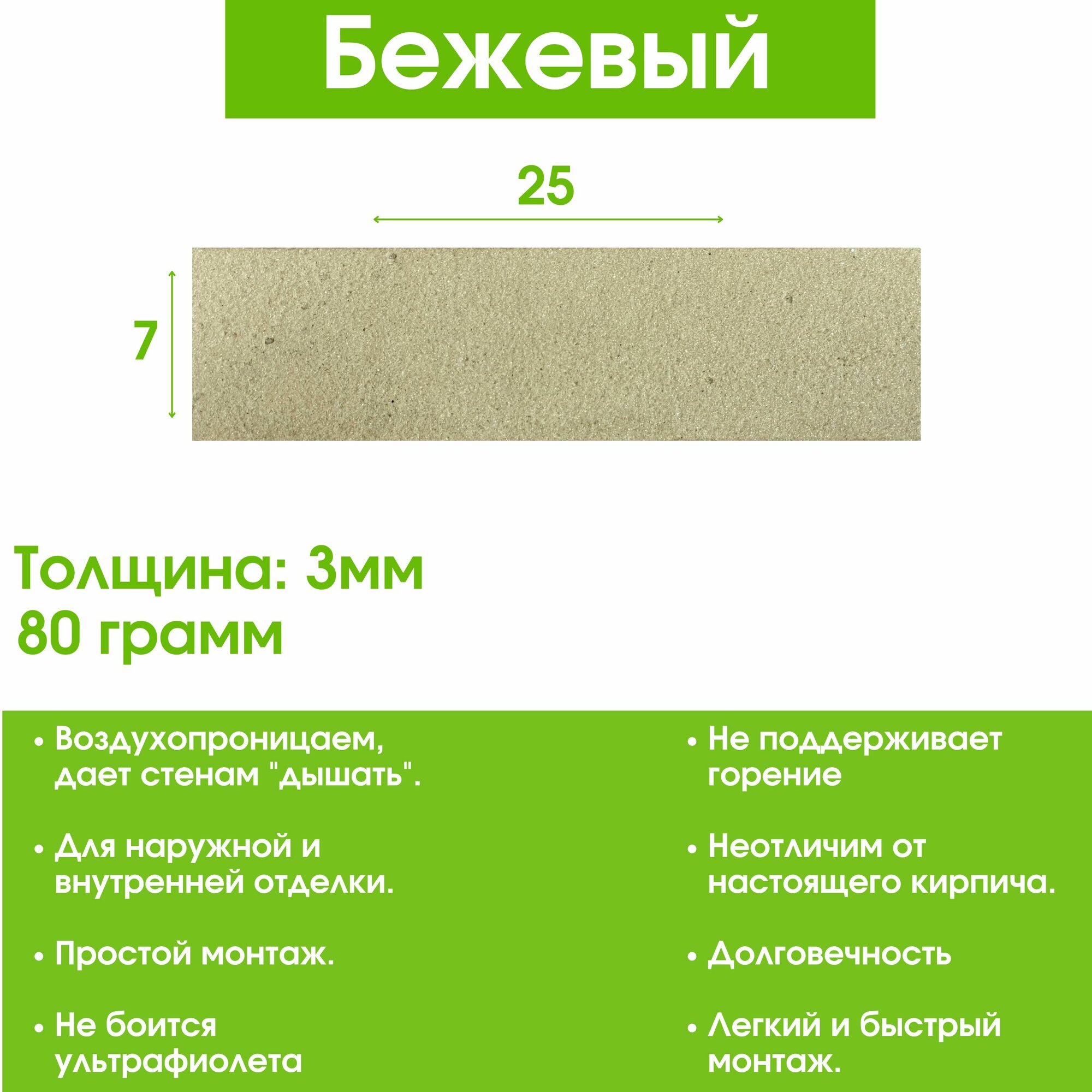 Гибкий кирпич штучный. Декоративный кирпич. Для внутренней и внешней отделки. Бежевый информация: