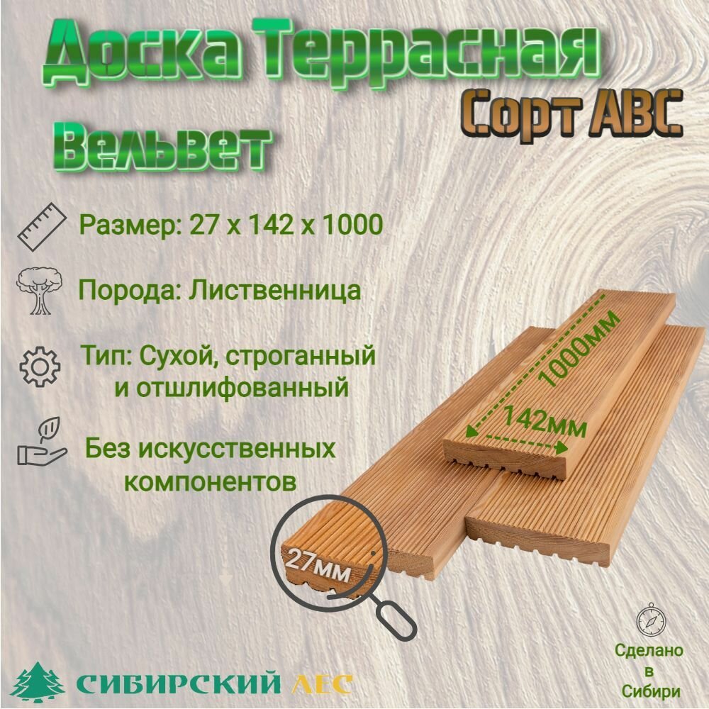Доска Террасная Вельвет Лиственница 1000*142*27 АВС комплект 4 шт информация: