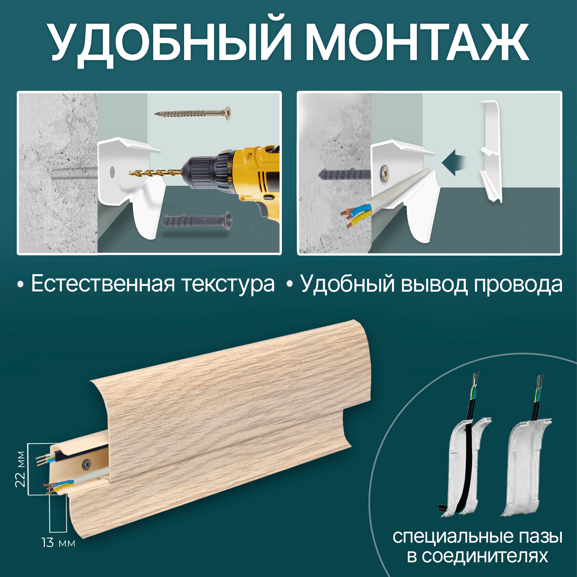 10 цен на Плинтус напольный 1100 х 60 мм , 20шт , с кабель-каналом , цвет Дуб Эльзас