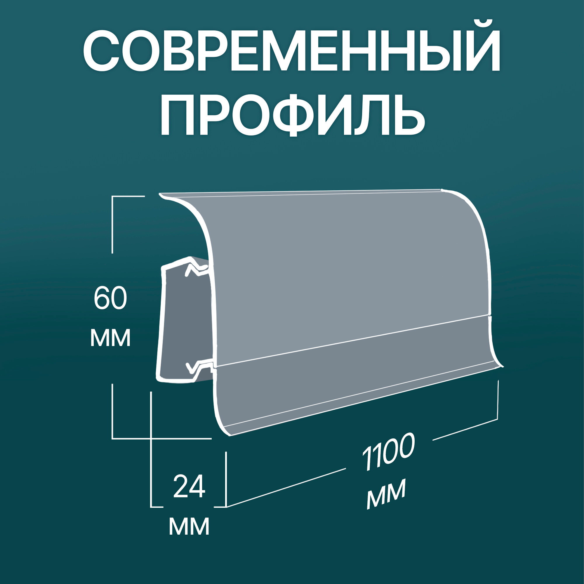 Плинтус напольный 1100 х 60 мм , 20шт , с кабель-каналом , цвет Дуб Дымчатый информация: