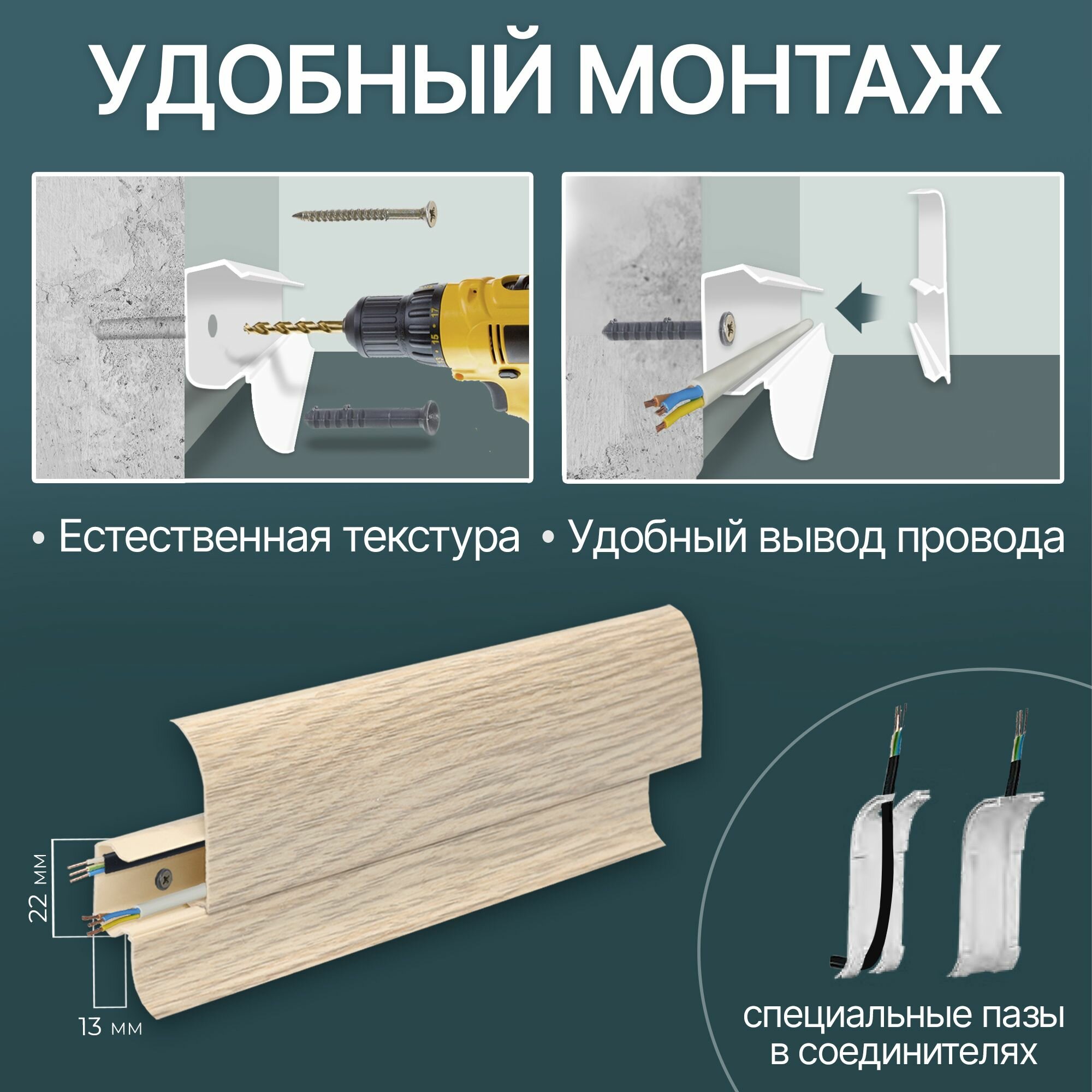 Плинтус напольный, 10шт 1100x60 мм, с кабель-каналом , цвет Дуб Эльзас информация: