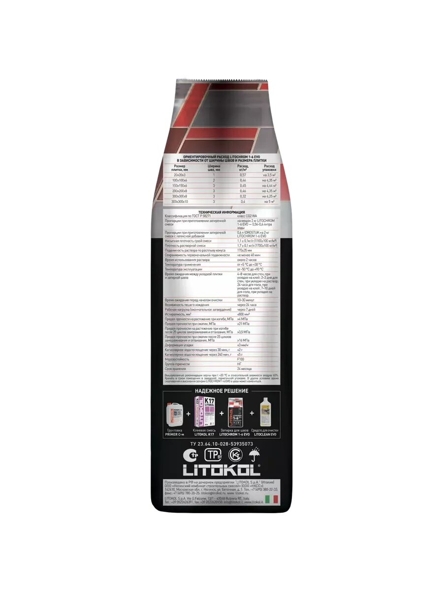 Цементная затирка Литокол LITOKOL LITOCHROM 1-6 EVO LE.130 Серый, 2 кг