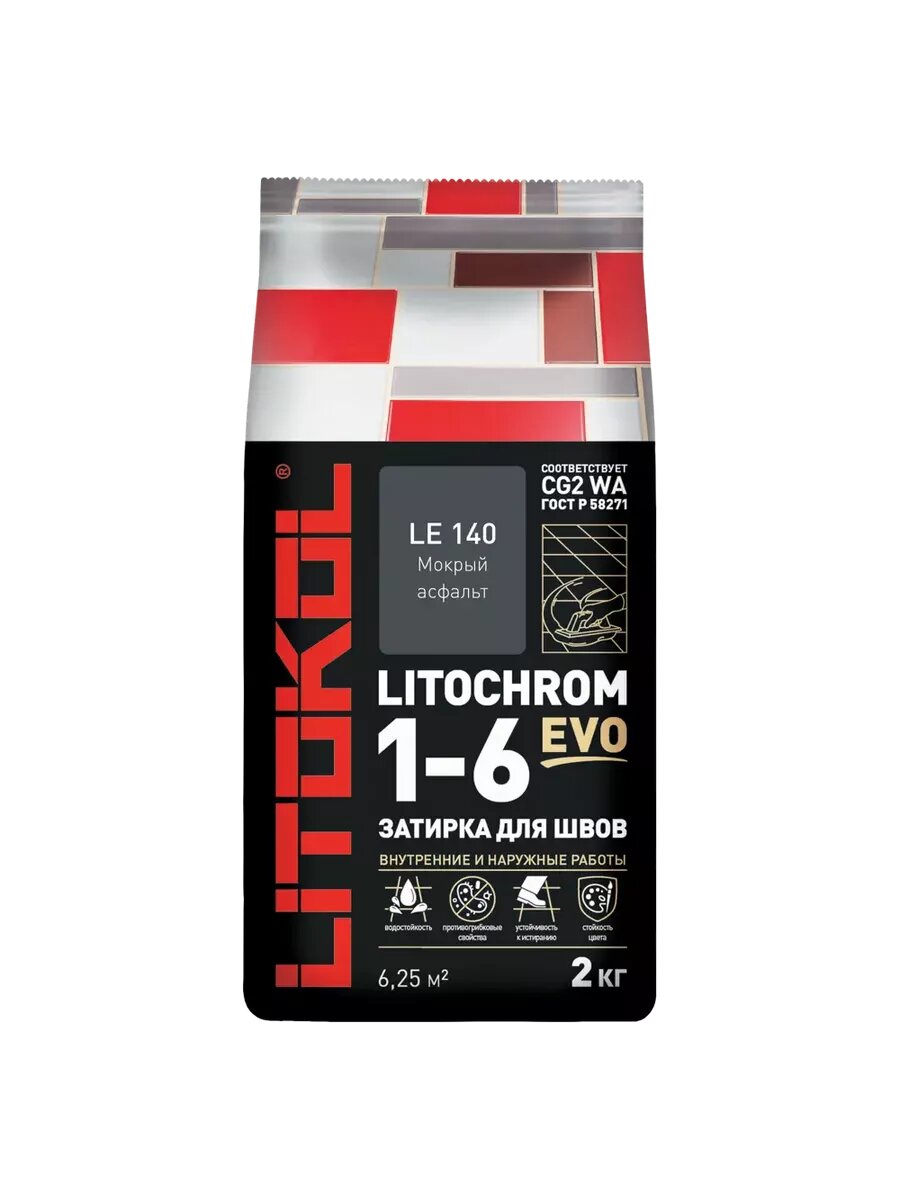 Цементная затирка Литокол LITOKOL LITOCHROM 1-6 EVO LE.140 Мокрый асфальт, 2 кг