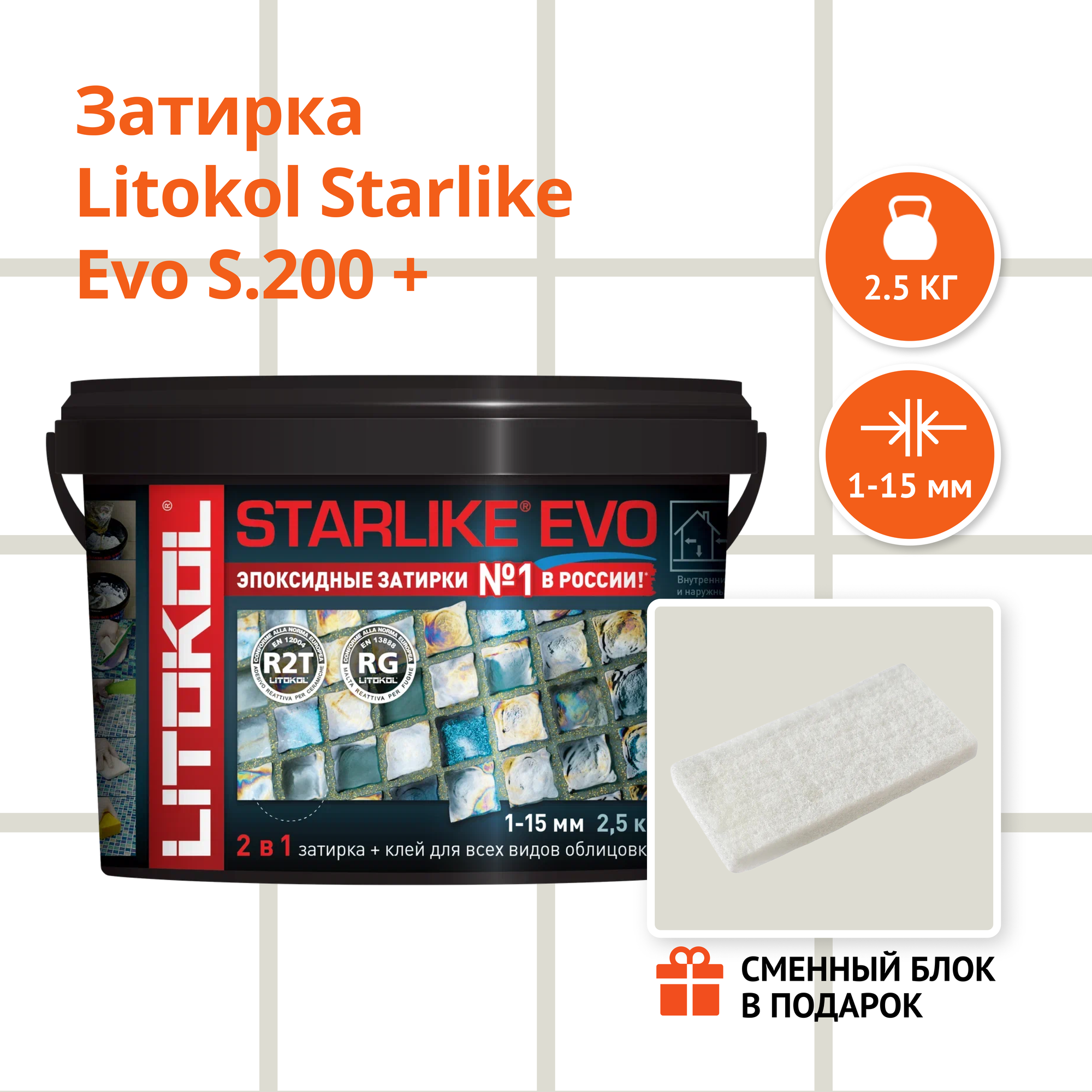 Затирка для плитки эпоксидная LITOKOL STARLIKE EVO (старлайк ЭВО) S.100 BIANCO ASSOLUTO, 1кг + Сменный блок в подарок