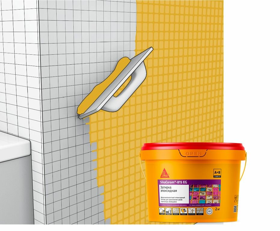 Затирка для плитки гидроизоляционная SikaCeram - 815 EG двухкомпонентная эпоксидная 2 кг, цвет светло-серый