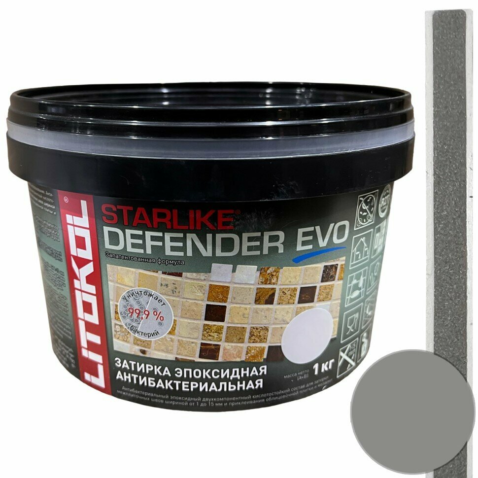Эпоксидная затирка LITOKOL STARLIKE DEFENDER EVO Жемчужно-серый 1 кг 7 214 ₽