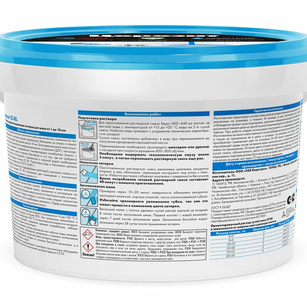 Затирка цементная водоотталкивающая Церезит CE 40, цвет Серо-голубой, 2 кг 1 060 ₽