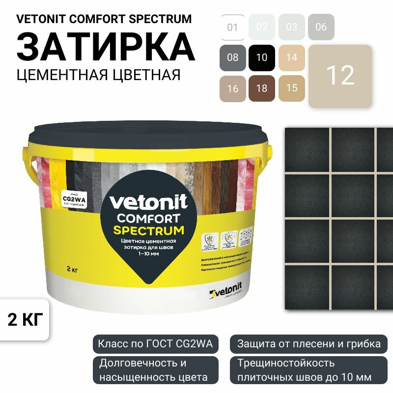 Цементная затирка для плитки Ветонит Комфорт vetonit comfort spectrum 12 гранит 2 кг 550 ₽