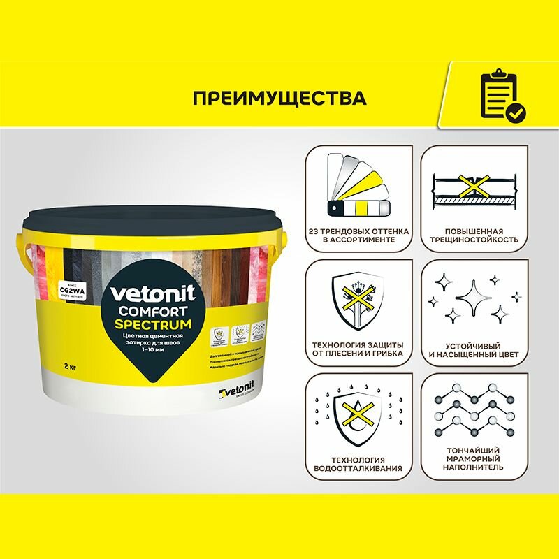 Затирка для швов Vetonit Comfort Spectrum 1-10 мм, цементная 2 кг, 05 цемент 676 ₽
