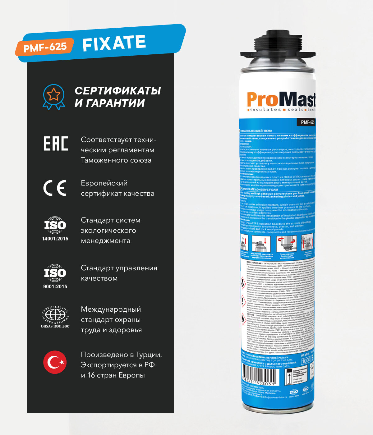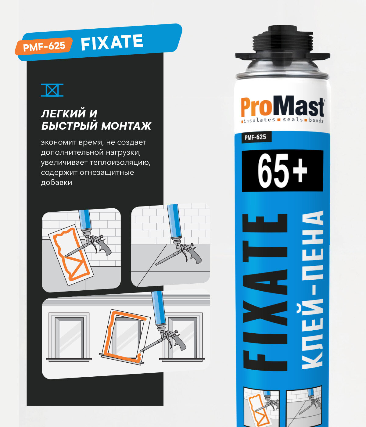 Монтажная полиуретановая клей-пена под пистолет ProMast Fixate информация: