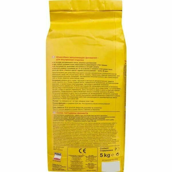 Шпатлевка для стен и потолка Pufas Füll + Finish 5кг, гипсовая финишная Германия информация: