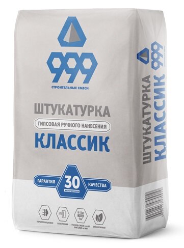 Штукатурка гипсовая СМ-999 Классик для ручного нанесения, 30 кг информация: