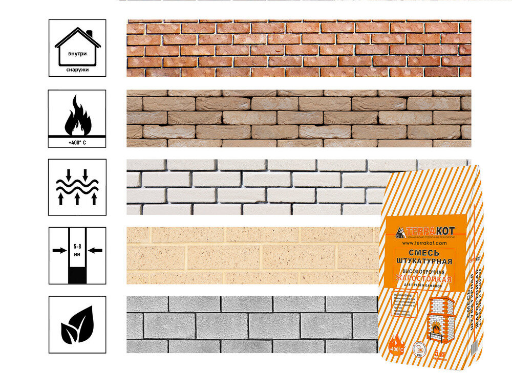 Штукатурка цементная Терракот жаропрочная высокопрочная, 5 кг информация: