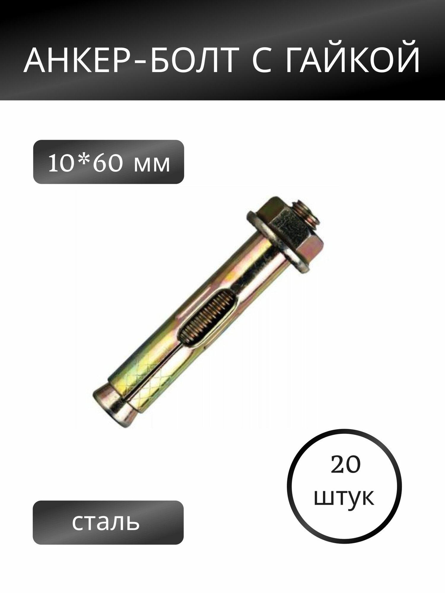 Анкерный болт с гайкой 10х60 мм ( 20 шт. ) информация: