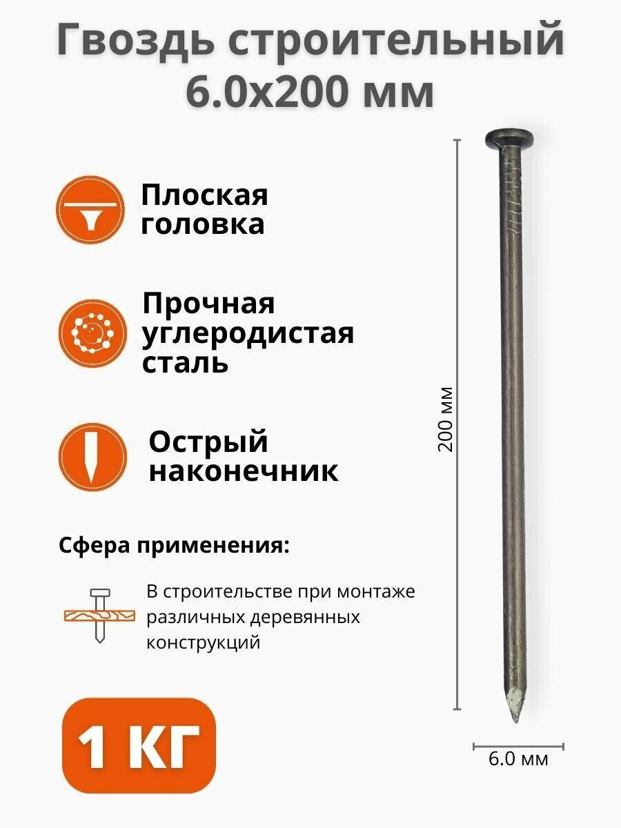 Гвоздь строительный 6 х 200 мм 1 кг информация:
