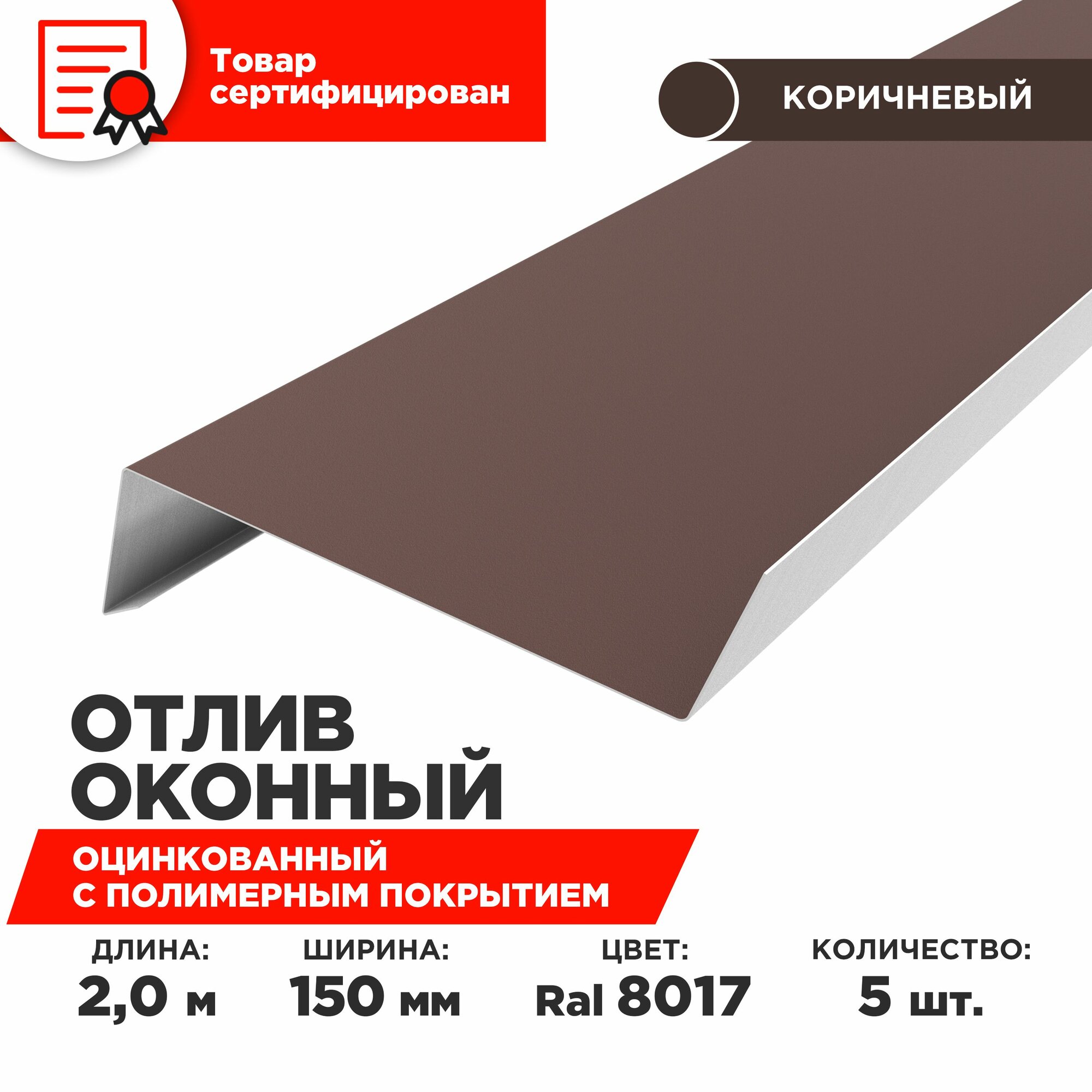 10 цен на Отлив оконный ширина полки 150мм, цвет шоколад(RAL 8017) Длина 2м, 5 штуки в комплекте