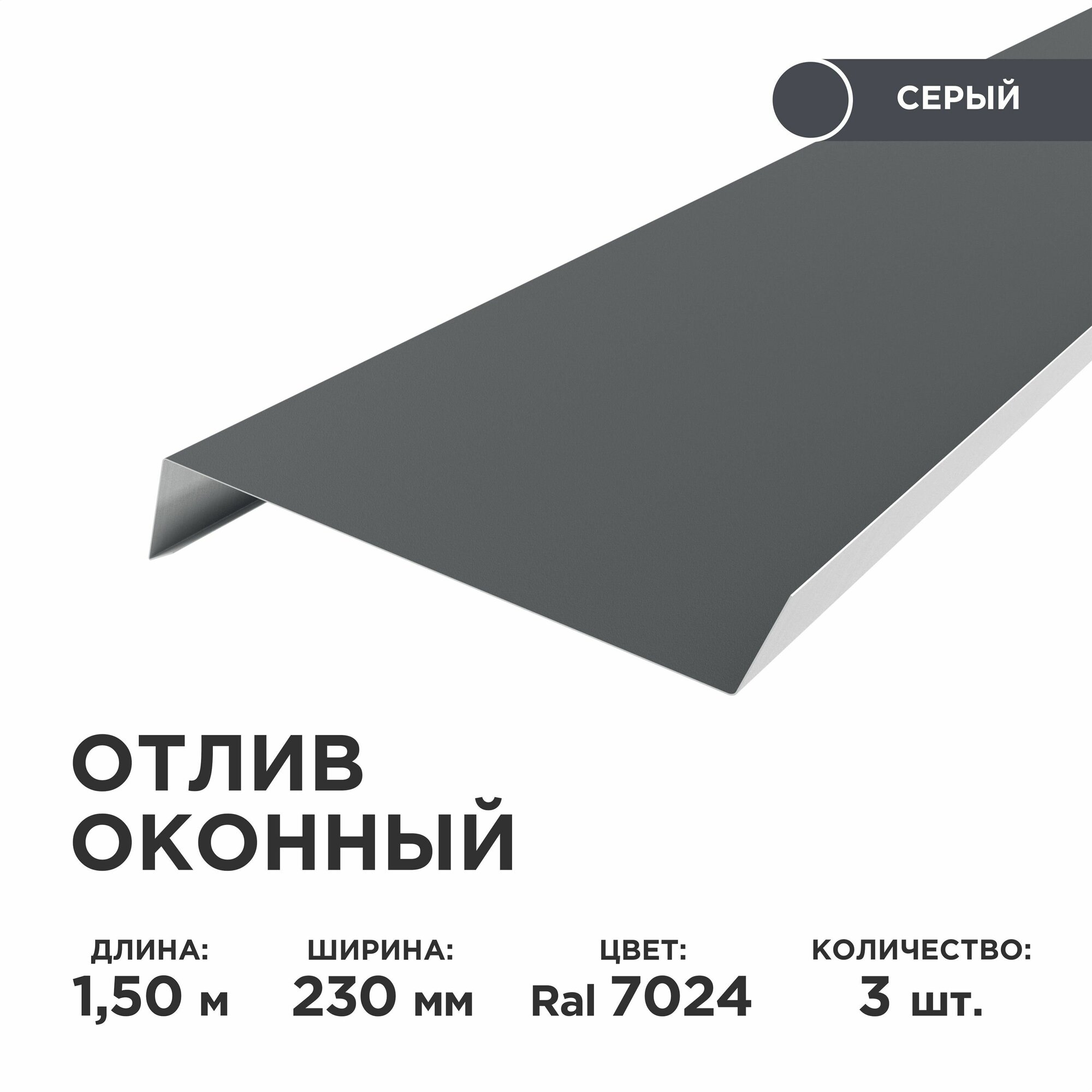 10 цен на Отлив оконный ширина полки 230мм/ отлив для окна / цвет серый(RAL 7024) Длина 1,5м, 3 штуки в комплекте