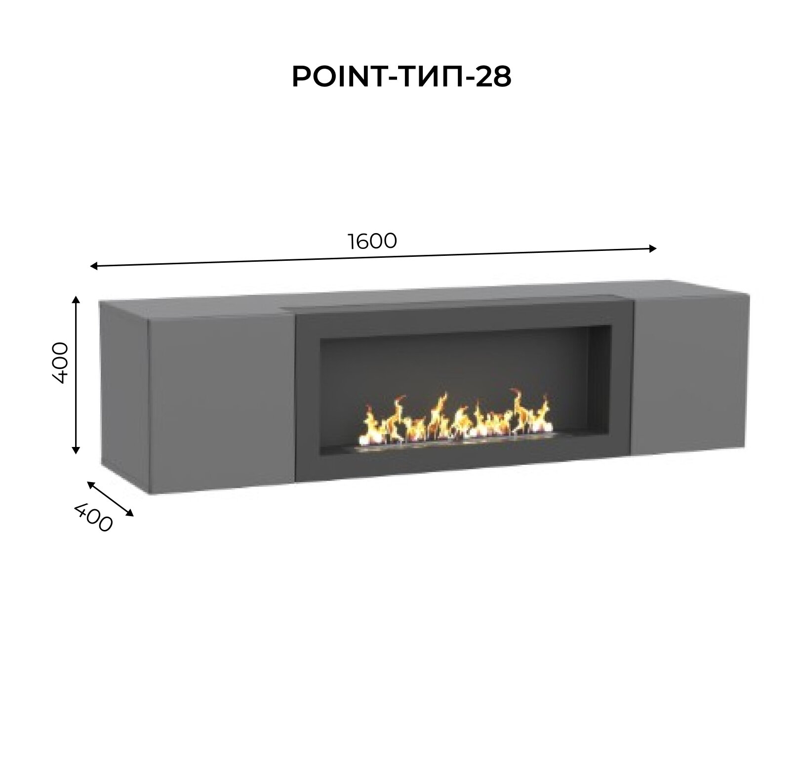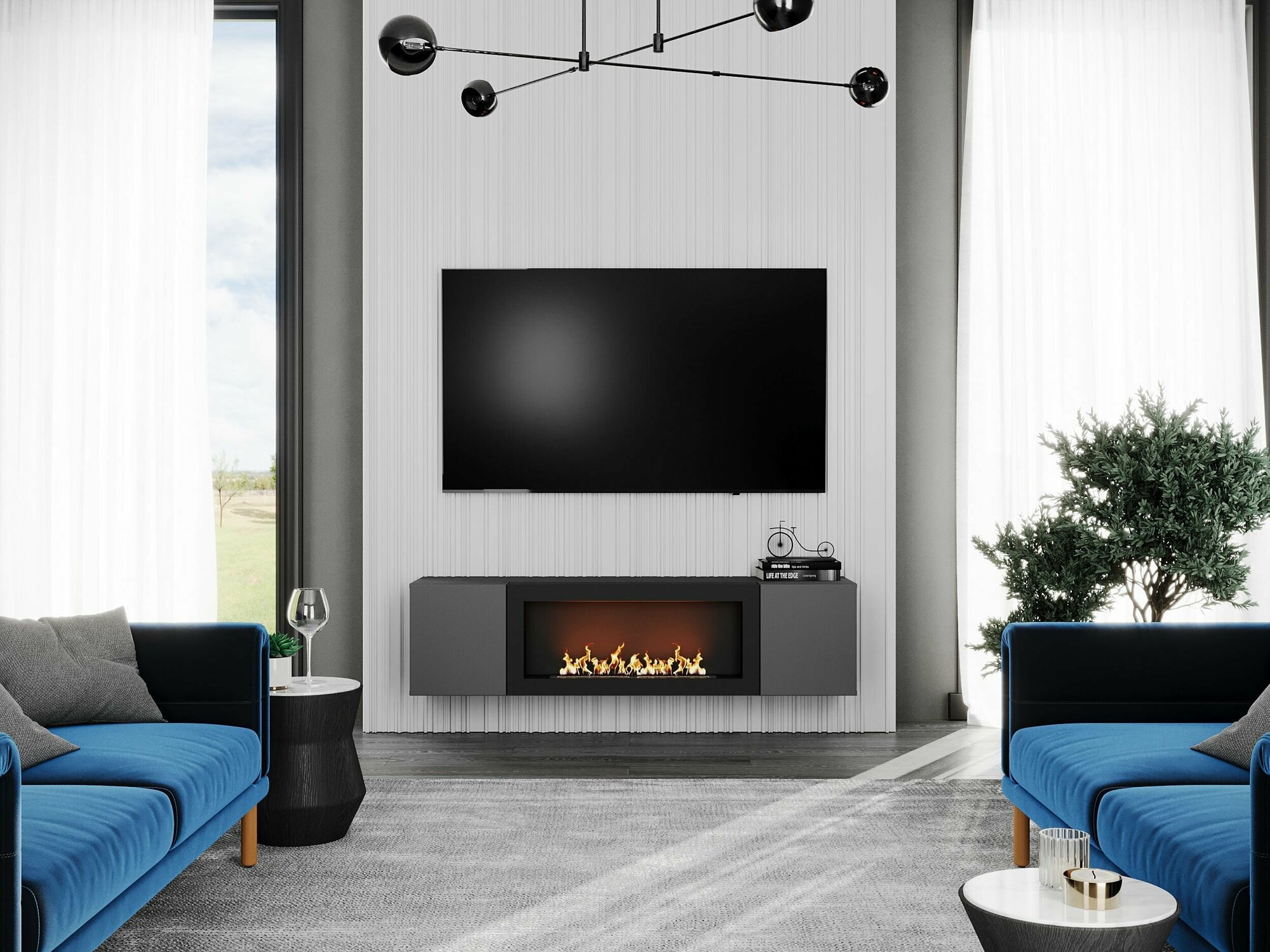 Тумба подвесная, тумба под ТВ, тумба биокамин POINT TYPE-28, Серый графит, (ШхВхГ) 160х40х40 см информация: