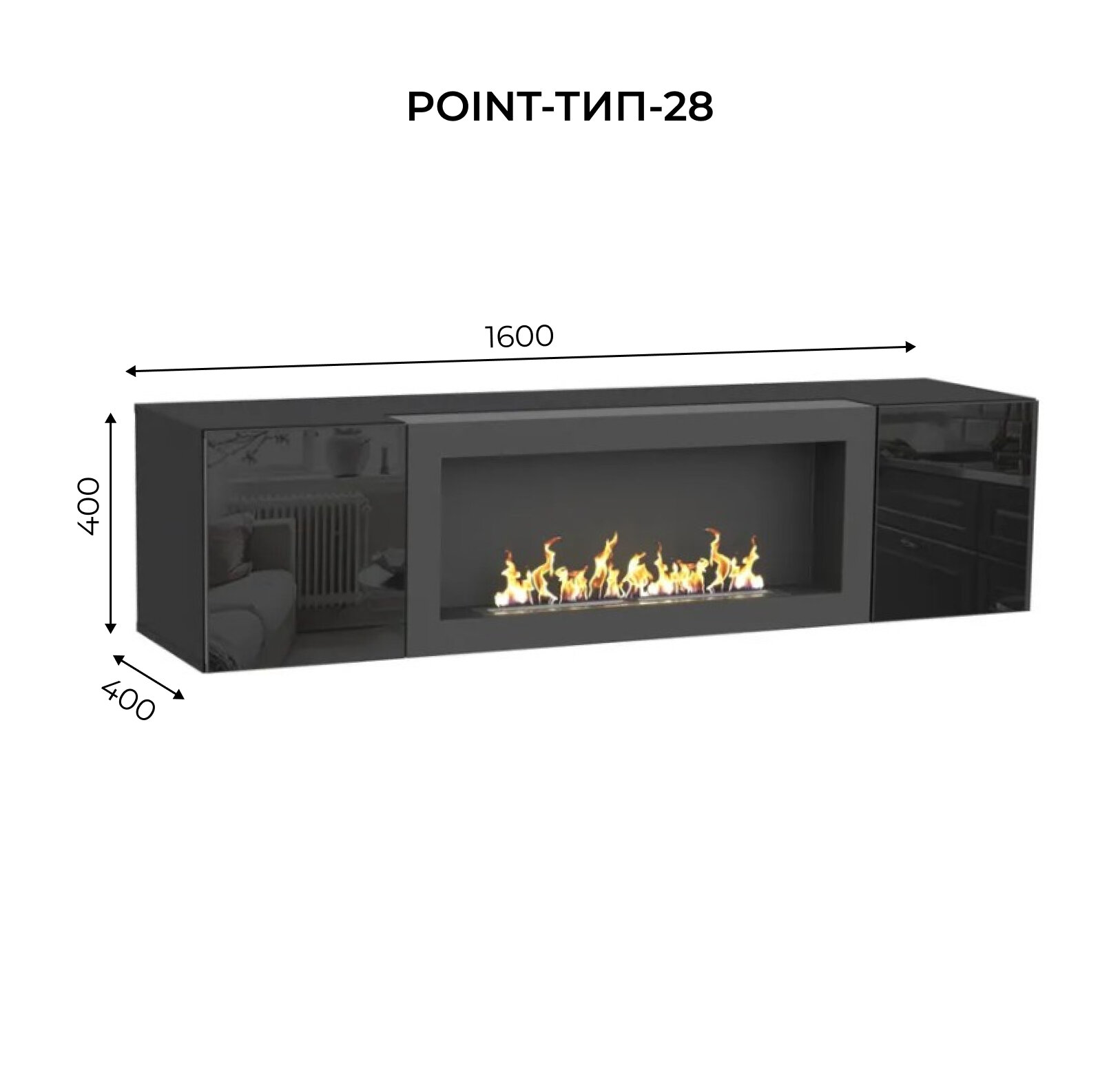 Тумба подвесная, тумба под ТВ, тумба биокамин POINT TYPE-28, Черный глянец, (ШхВхГ) 160х40х40 см информация: