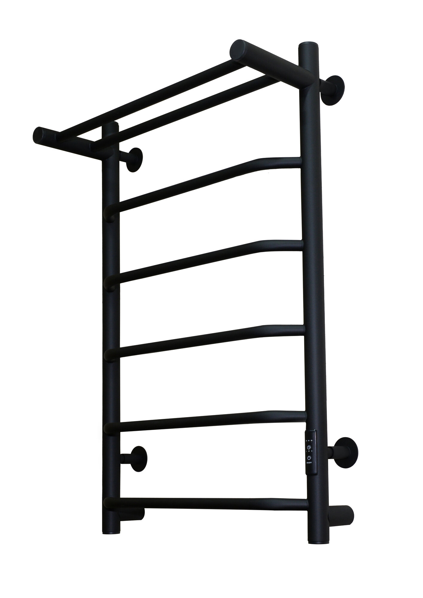 Полотенцесушитель электрический для ванны с терморегулятором, черный матовый, 5 перекладин с полкой информация: