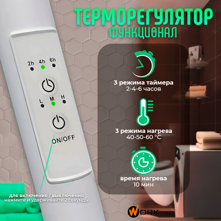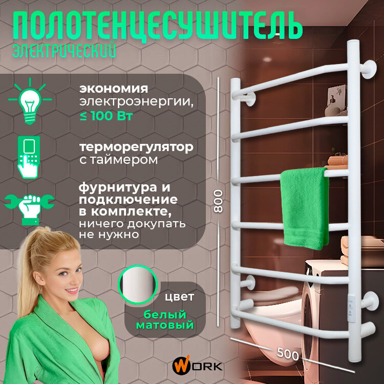 Полотенцесушитель электрический WORK-Оливер 80x50 белый с терморегулятором, 6 перекладин информация: