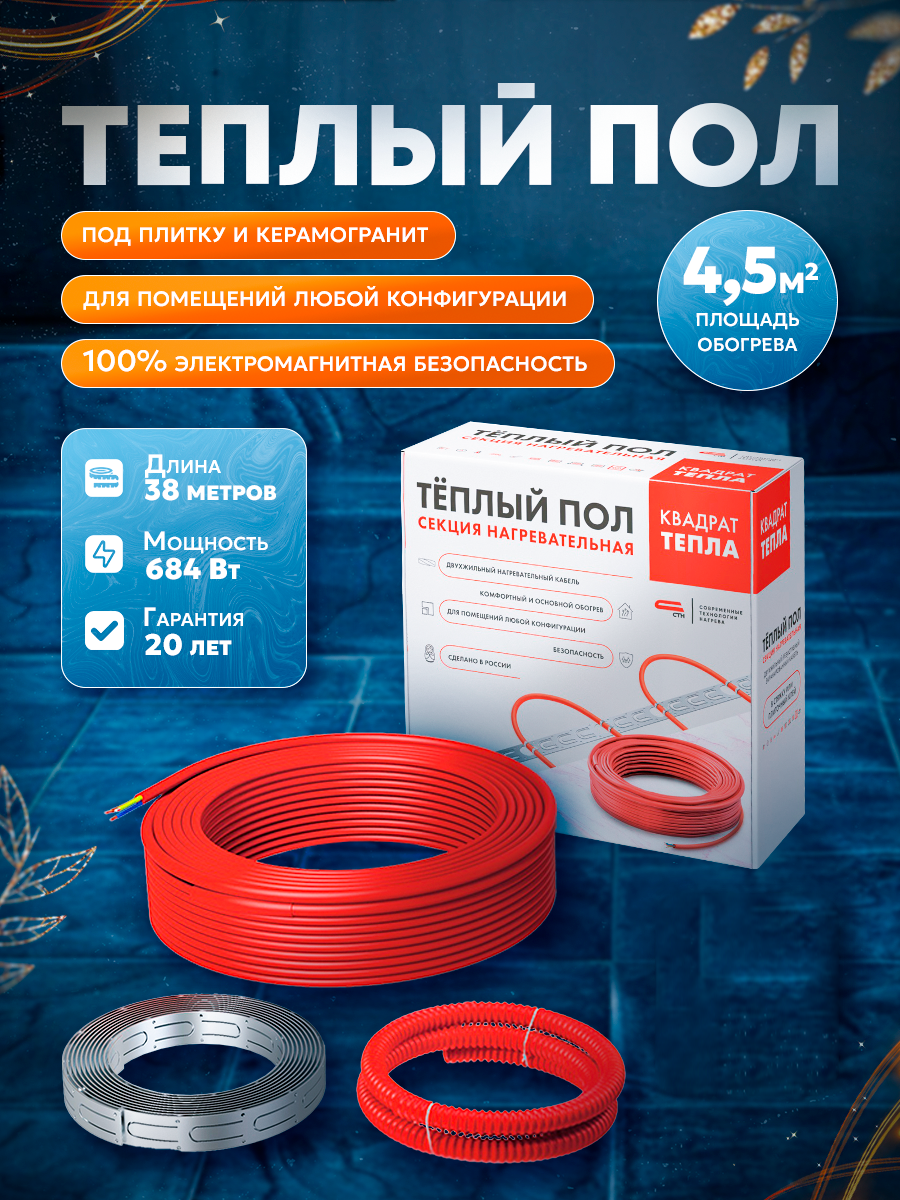 Теплый пол СТН Кабельная секция Квадрат Тепла 18Вт/м. п. 2ж СТН КС-1200 1200Вт/65м 6 590 ₽