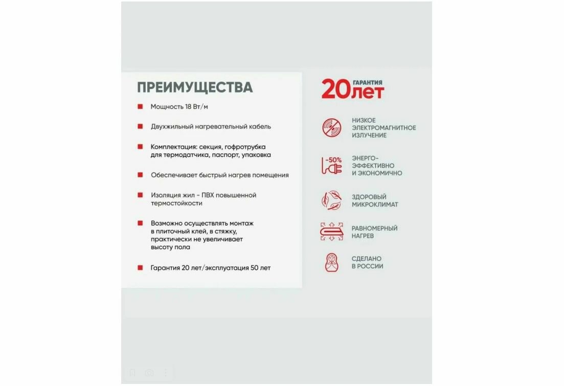 Теплый пол Квадрат Тепла 75 м-1350 Вт кабельный с терморегулятором 6 112 ₽