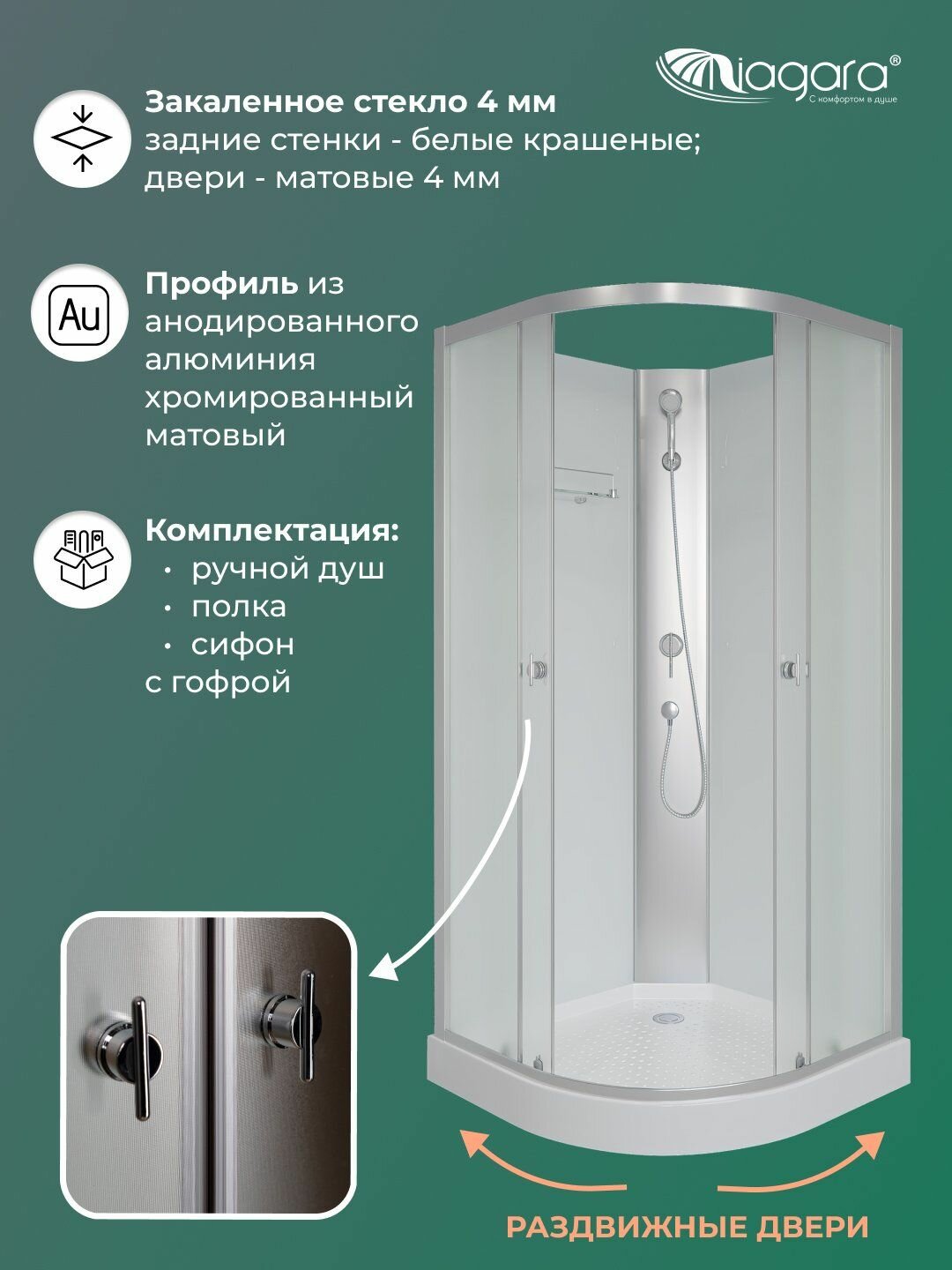 Душевая кабина Niagara E90/13/MT/BK (900х900х2000) низкий поддон (13см) стекло матовое информация: