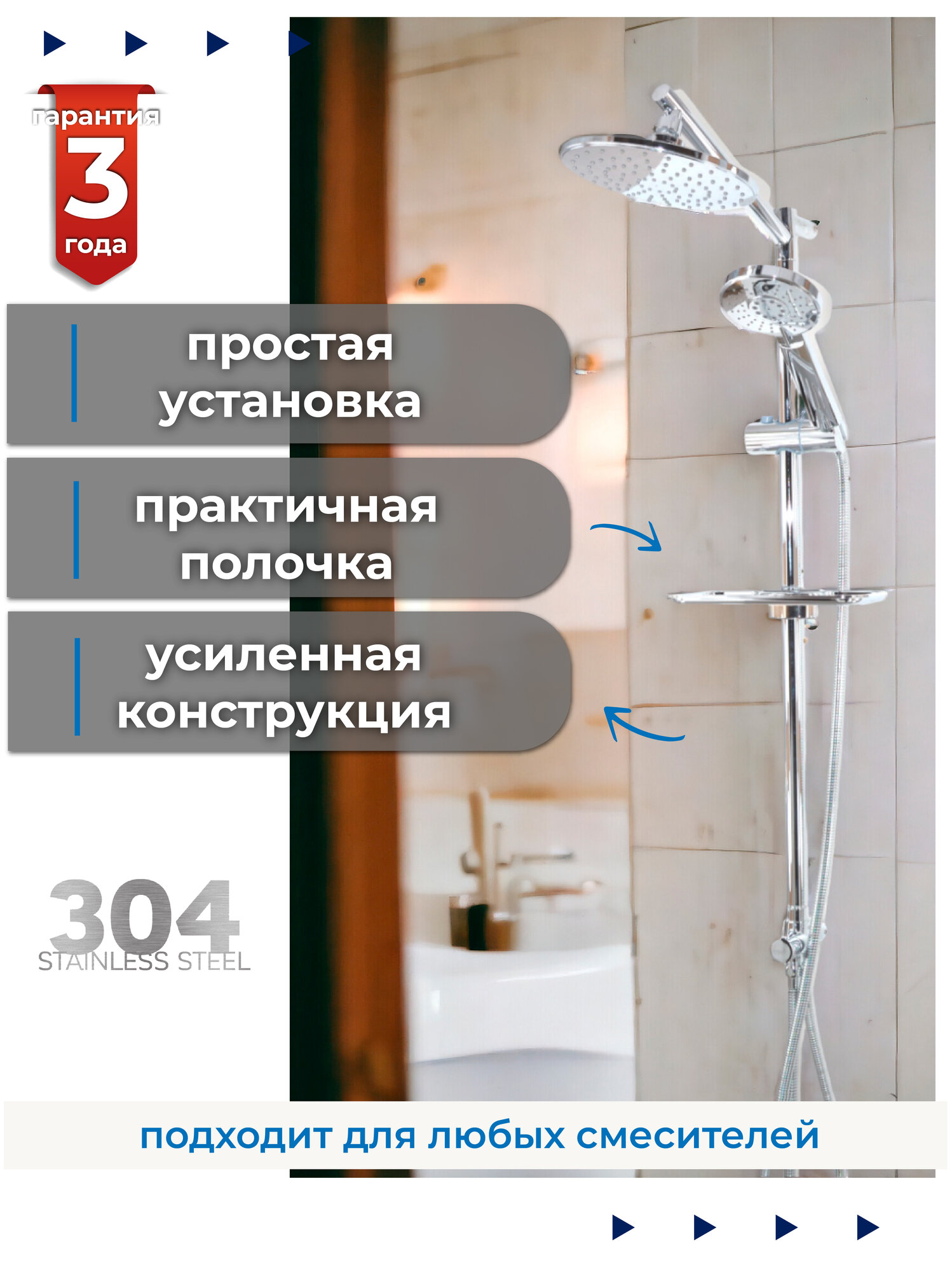 | Особенности | держатель душевой лейки / регулируемый верхний душ |