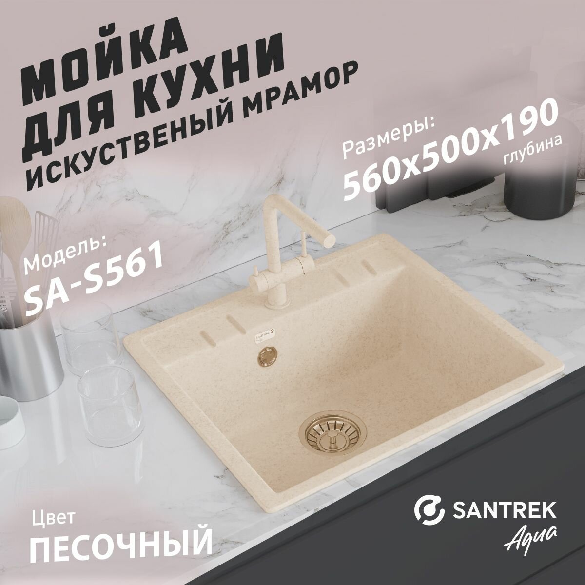 Отзывы на Мойка SANTREK AQUA SQUARE SA-S561 1 чаша 560*500 мм (песок-302) (без сифона)