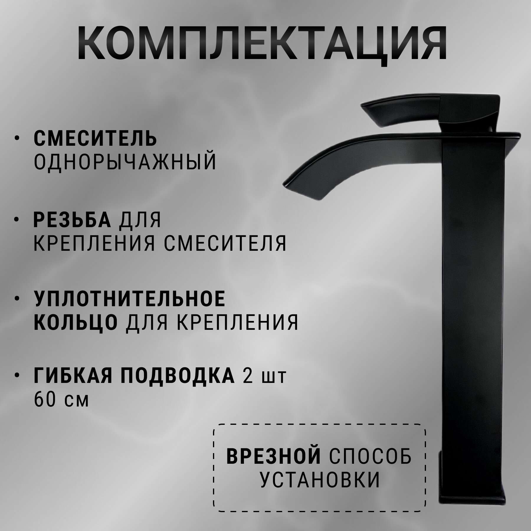 | Комплектация | Смеситель, резьба для крепления, уплотнительные кольца |