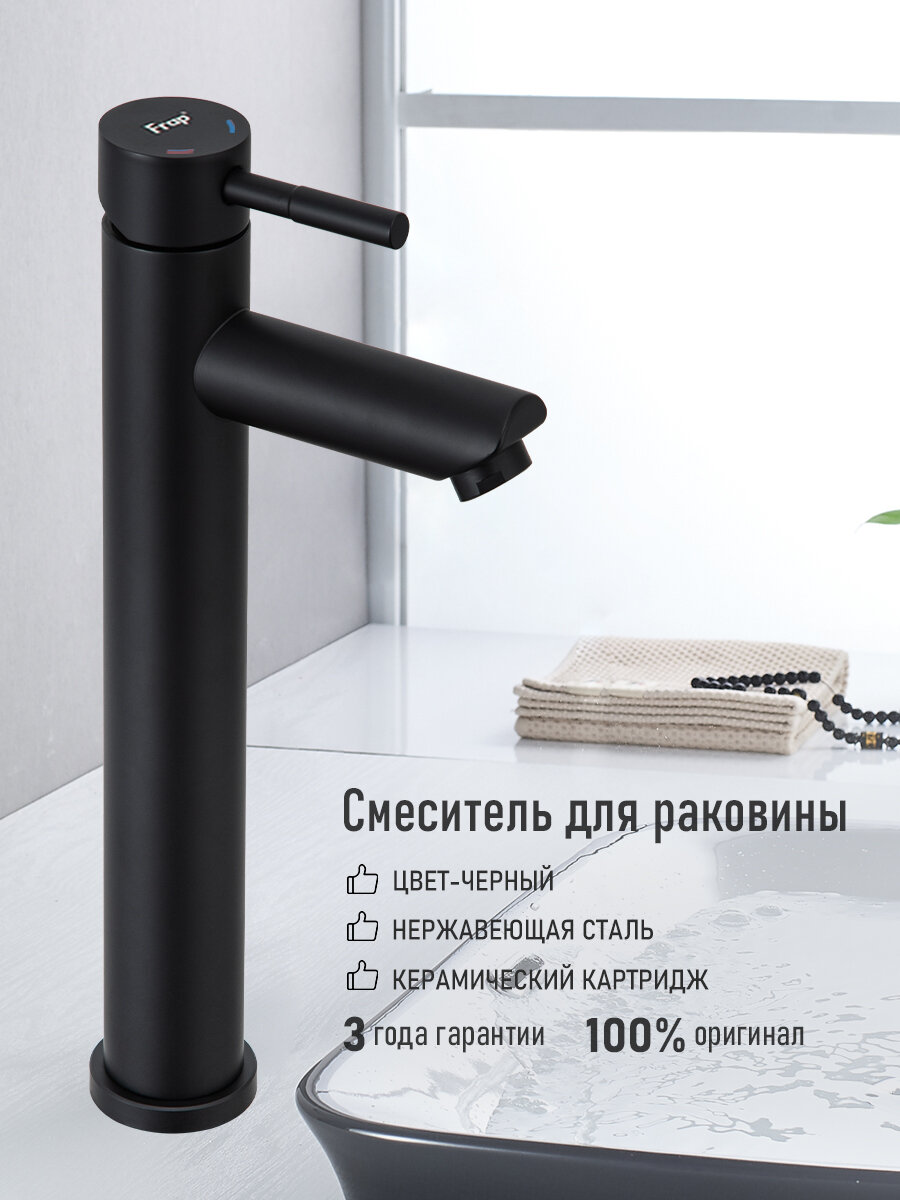 Смеситель для раковины (умывальника) Frap YF10801-62 чёрный нержавеющая сталь информация: