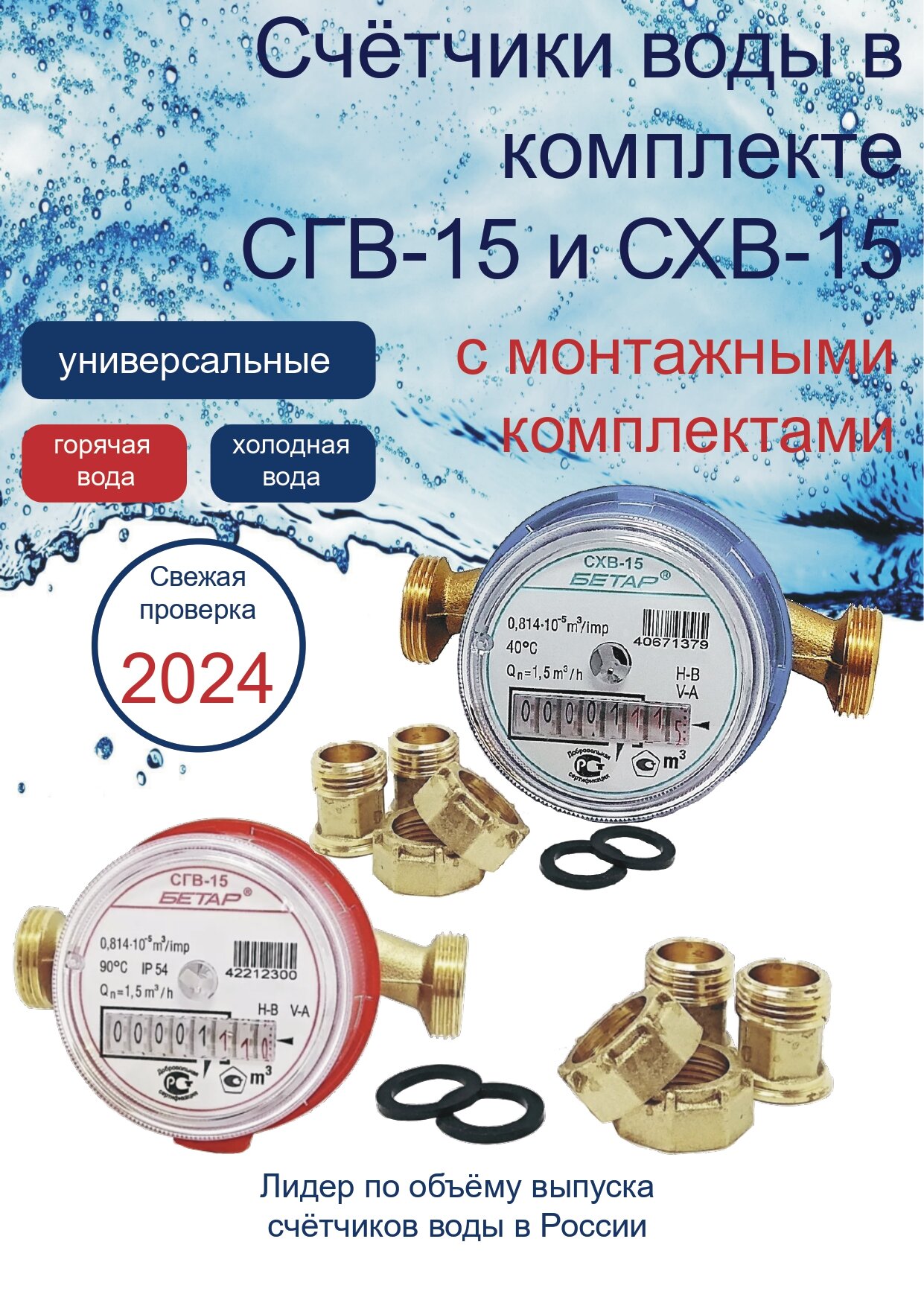 Комплект счетчиков воды Бетар СГВ-15 и СХВ-15, с монтажными комплектоми информация: