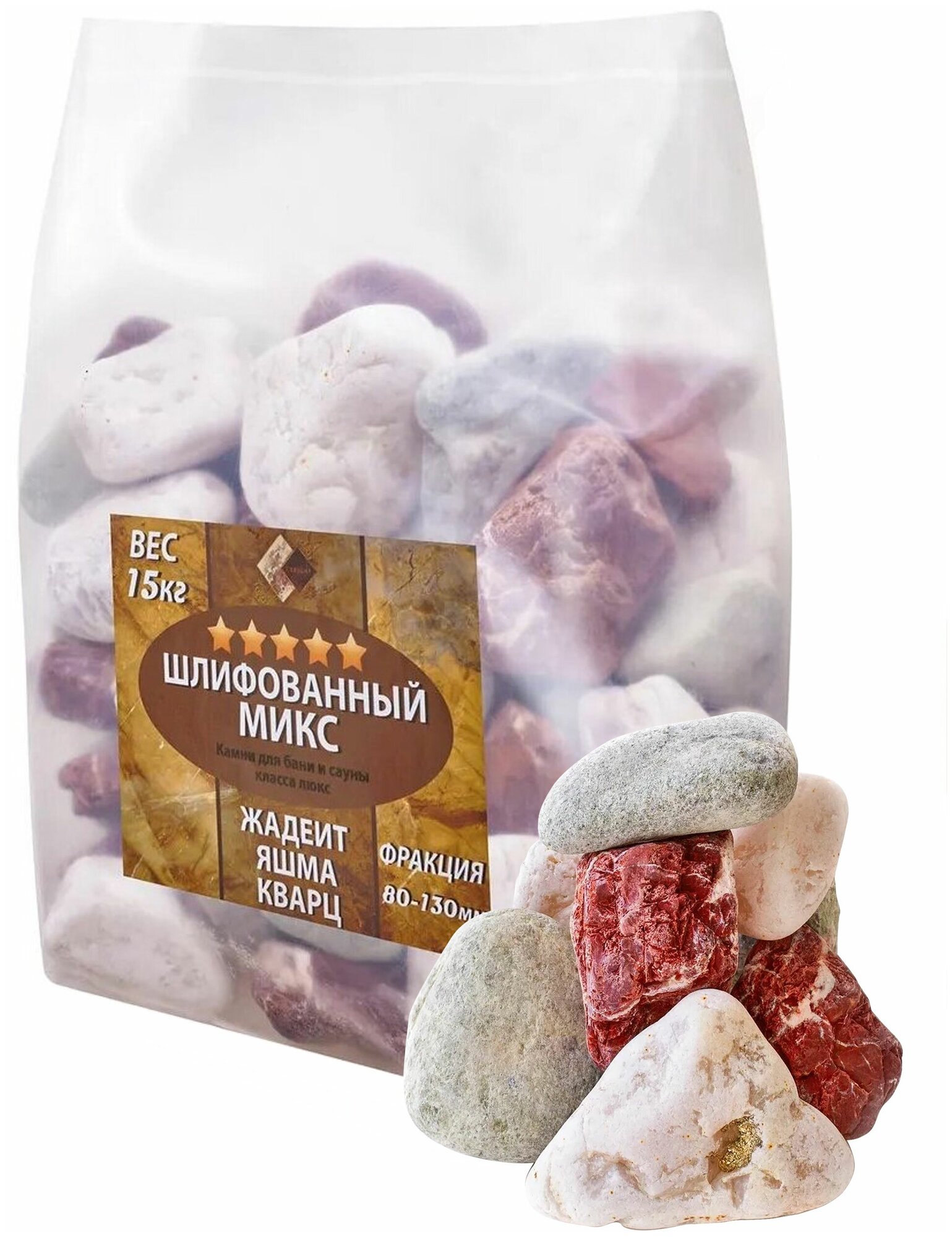 Камни для бани "Шлифованный микс" (Кварц, Жадеит, Яшма) 15 кг (фракция 80-130мм) информация:
