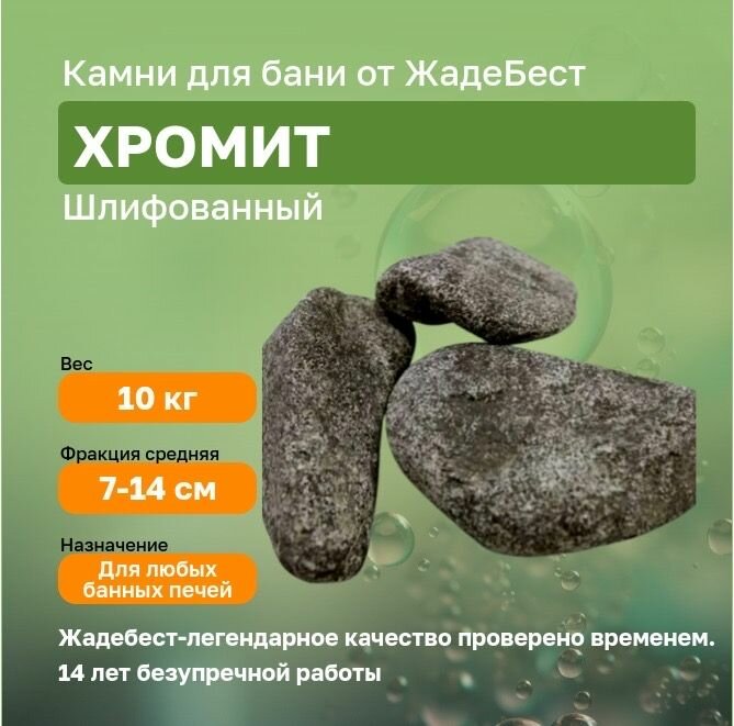 Хромит шлифованный ЖадеБест средняя фракция 7-14 см для бани и сауны 10 кг информация: