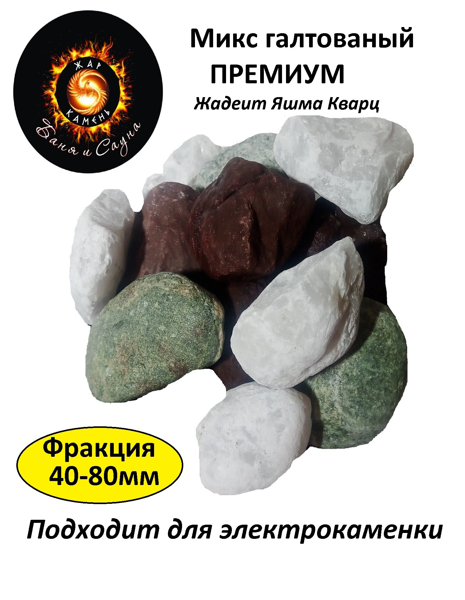 Микс камни для бани Жадеит Яшма Кварц колотые 8-15 см упаковка 15 кг