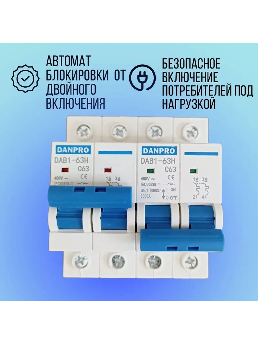 Рубильник реверсивный механический 63А 2p-2p, автомат ввода резерва генератора, на DIN-рейку информация: