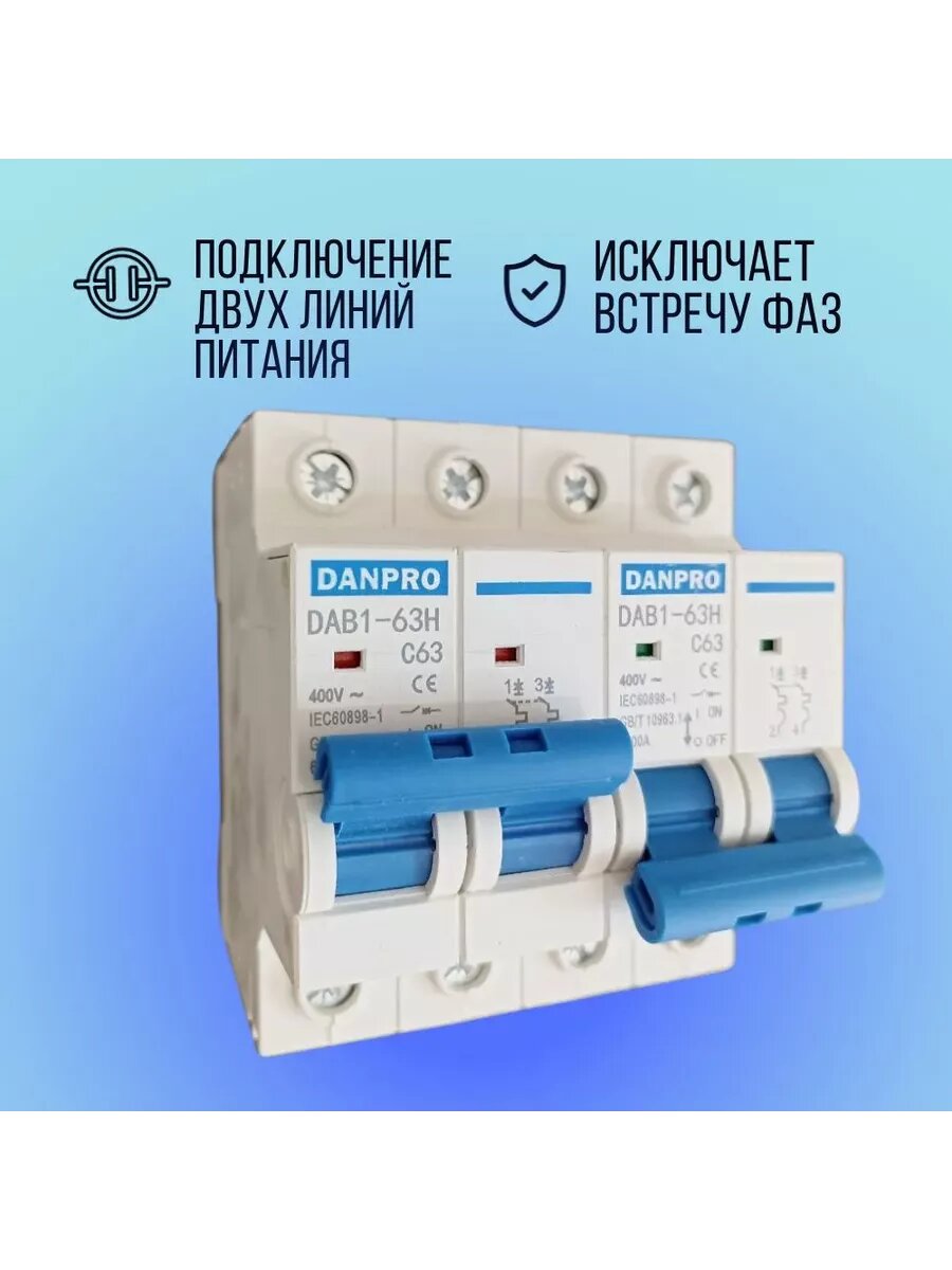 Рубильник реверсивный механический DANPRO, автоматический ввод резерва генератора, трехфазный 4P-4P на DIN рейку 2 490 ₽
