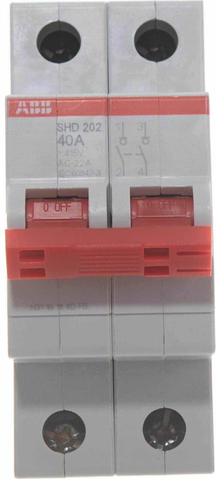 Рубильник модульный 2П ABB SHD202/40 рычаг красный 2CDD272111R0040 информация: