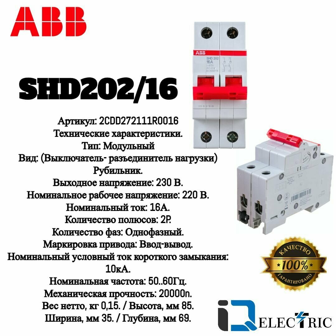 Отзывы на ABB SHD202/16 Рубильник 2х полюсный до 16А-рычаг красный 2CDD272111R0016