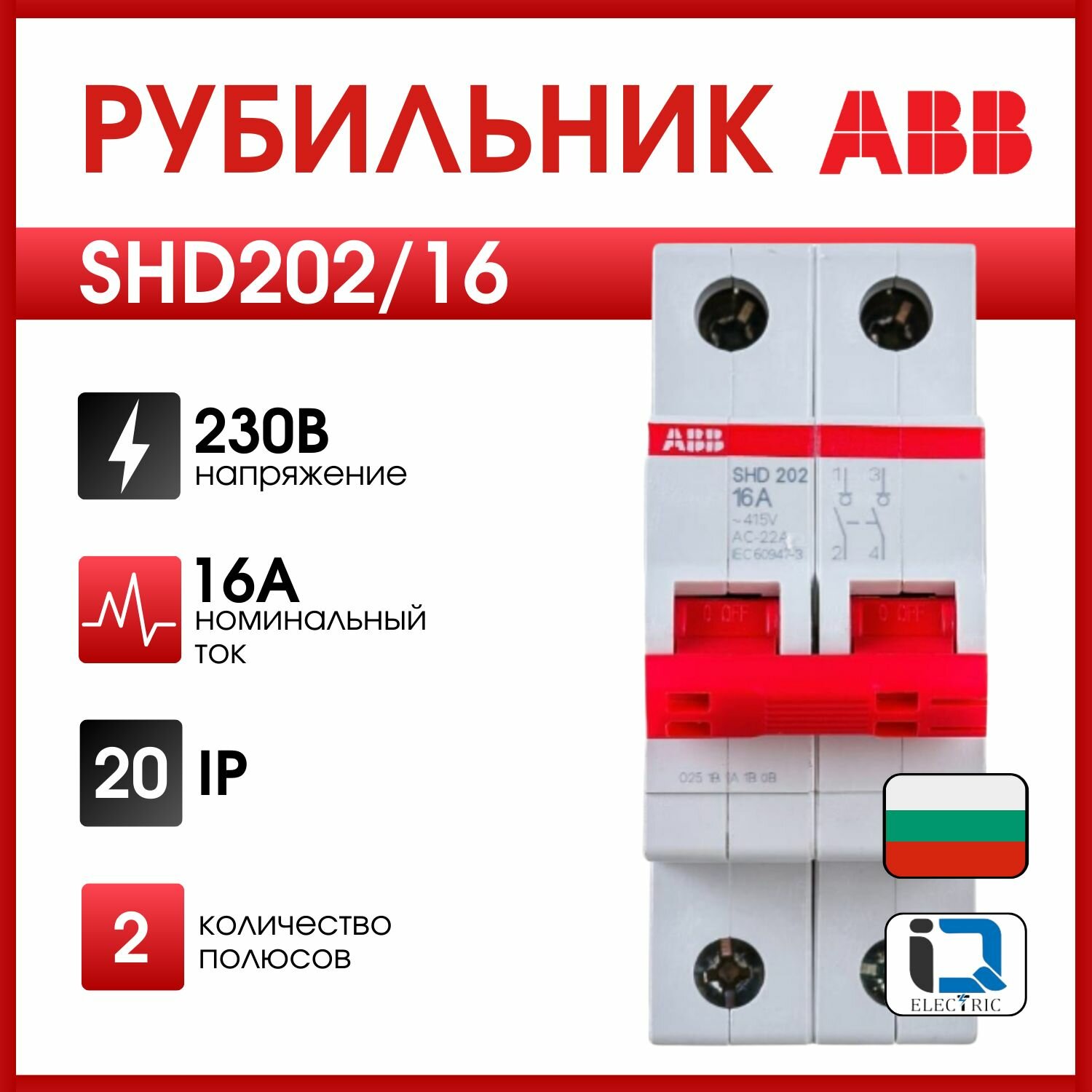 ABB SHD202/16 Рубильник 2х полюсный до 16А-рычаг красный 2CDD272111R0016 информация: