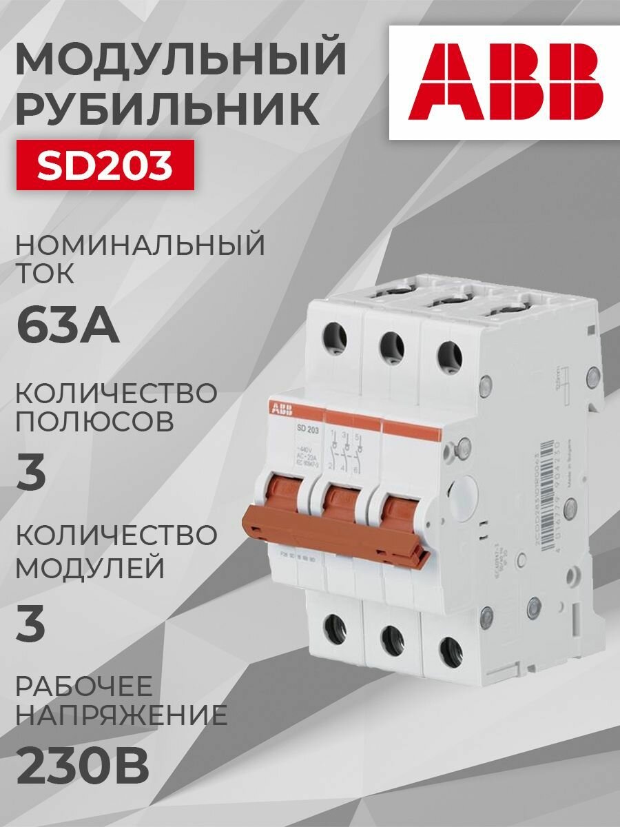 10 цен на Рубильник ABB 3P SD203 63A красный рычаг (1шт) (арт. 2CDD283101R0063)