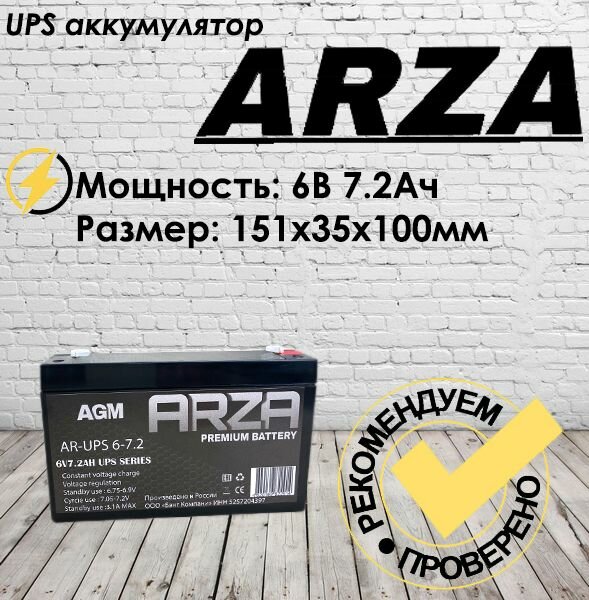 10 цен на Аккумулятор ARZA 6V7.2AH