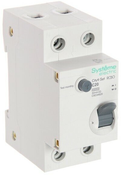 Дифференциальный автомат 20А 30мА City9 Set Systeme Electric / Schneider Electric автоматический выключатель АВДТ 4.5kA Тип-AС двухмодульный 1P+N C9D34620 4 939 ₽