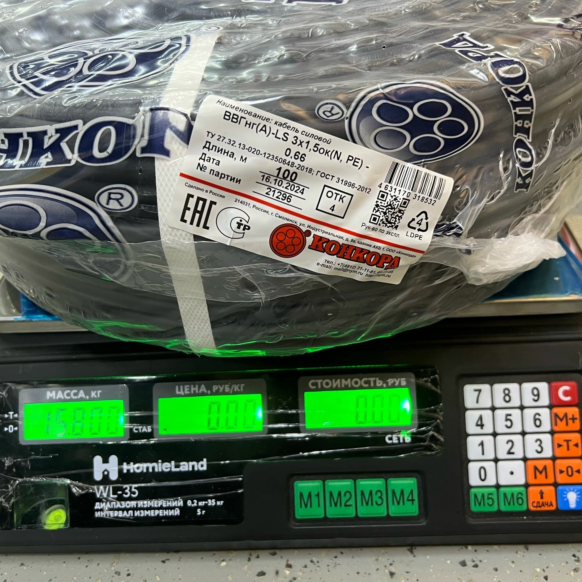 10 цен на Конкорд ВВГнг(А)-LS 3Х1,5 с заполнением ОК-0,66 - 100м