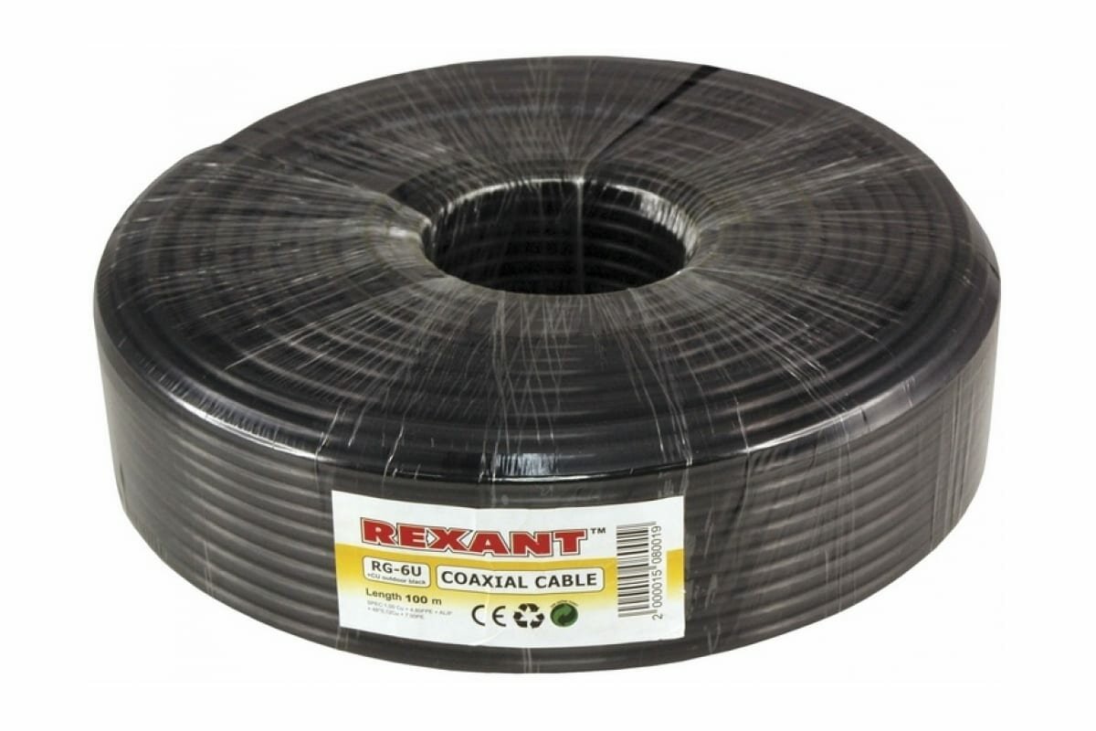 Отзывы на REXANT 01-2222 Кабель коаксиальный RG-6U+Cu 48(64%) 75 Ом, OUTDOOR, чёрный, 100м.