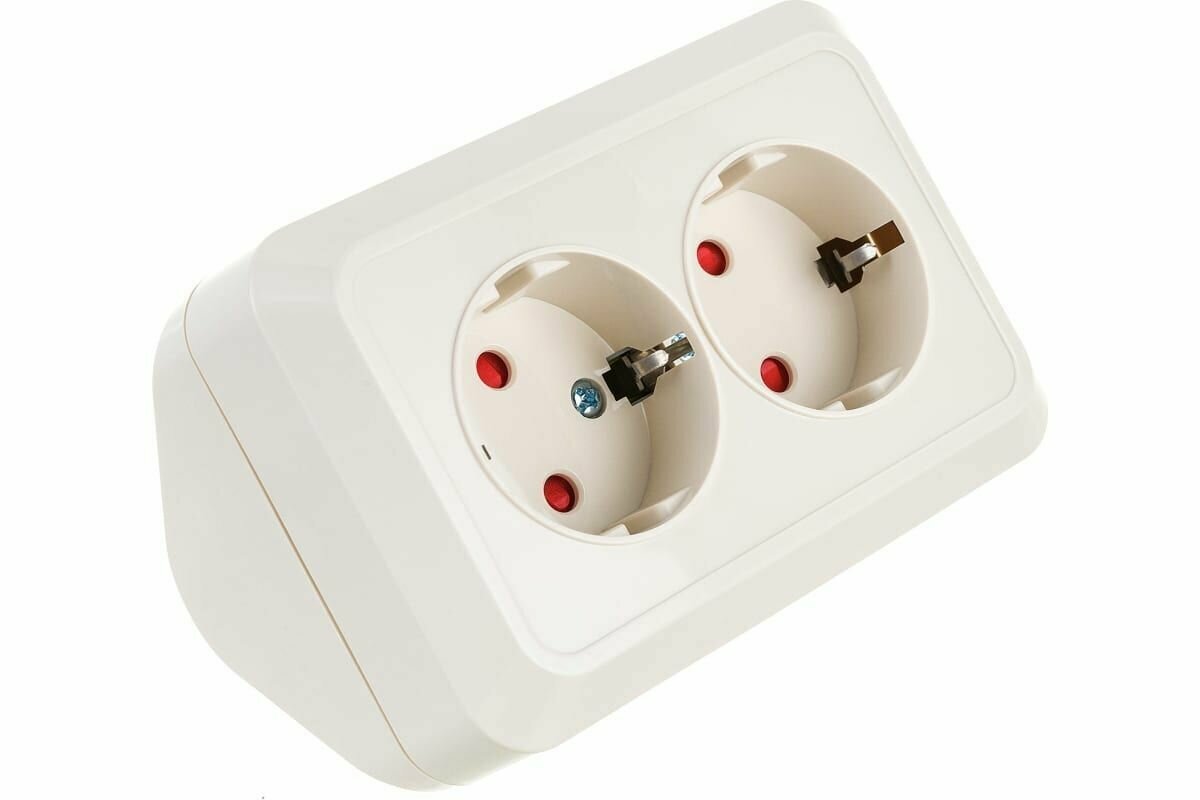 Отзывы на Розетка угловая двойная открытой установки с заземлением и защитными шторками, IP20, 250В, 16А, слоновая кость, Ладога