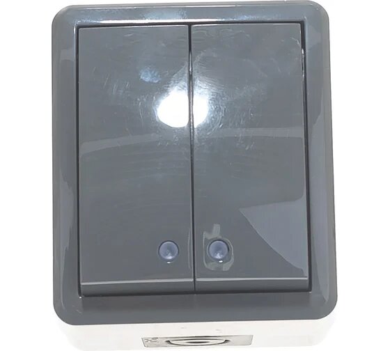 Выключатель ЭРА Эксперт двухклавишный влагозащищенный серый IP54 для открытой проводки